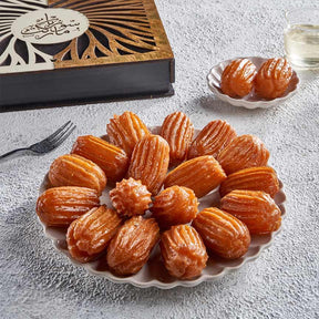 بلح الشام – طعم ولون بياخد العقل! حلو شرقي راقي معمول على الطريقة السورية الأصلية، طعمة أيام زمان اللي كلنا متعودين عليها! عجينة مقرمشة من برا وهشة وطرية من جوا، لون ذهبي شهي، ومسقاية بالقطر الخفيف لتحافظ على توازن الحلاوة، طعمها بيخليك تاخد حبة ورا التانية بدون ما تحس، وما بتكمل تحلية شهر رمضان المبارك إلا بيها.