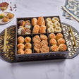 إذا بدك حلويات العيد بشكل فاخر وجميل، هالصينية هي الاختيار المثالي! بتجمع لك ألذ الحلويات في علبة وحدة، مظهرها أنيق ومحتواها غني بأنواع الحلويات اللذيذة. لتكون كافية لتحلي يومك أو تقدمها كهدية فاخرة للضيافة. بتحتوي على: بيتفور اكسترا، غريبة، برازق اكسترا، معمول، عجوة، معمول فستق، معمول جوز.