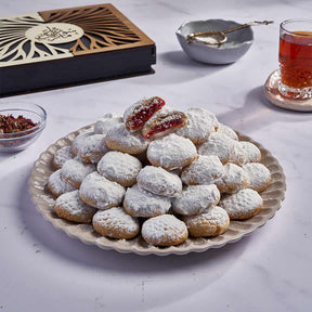 كحك ورد، مع طعم الورد الطبيعي اللي بيضيف لمسة فخامة على الحلويات. العجينة الخفيفة مع لمسة الورد بتخلي كل لقمة طيبة ومميزة. بتكون الخيار المثالي لو كنت بدك تقدّم شيء مختلف وغريب في العيد، وهاد الكحك بيزيد من جمال ضيافتك.