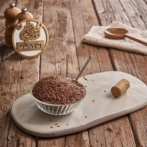 بذور الكتان غنية بالألياف، أوميغا 3، ومضادات الأكسدة. مثالية للإضافات على السلطات أو العصائر. صحية وطازجة، بتدعم صحة القلب، بتحسن الهضم، وبتساعد على تقليل الكوليسترول.