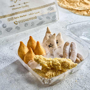 كبة سادة كبيرة ٤ سمبوسك حبنة ٣ كرسبي ٢ قطعة نقانق فراخ ٦ حبات