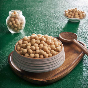 A convenient and delicious snack, either alone or in a snack mix, such as dried fruit or other nuts.