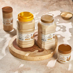 طحينة سمسم طبيعية 100%، محضرة من أجود أنواع السمسم المحمص لتعطيك قوام كريمي وطعم غني! أساسية لتحضير الحمص بالطحينة، الفتة، السلطات. غنية بالبروتين، الكالسيوم، ومضادات الأكسدة، خيار صحي ولذيذ لكل بيت!