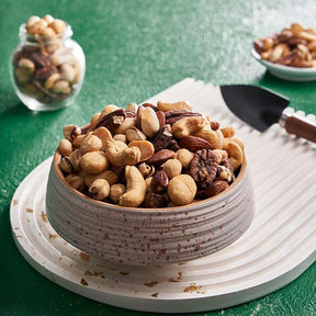 Extra Mix Nuts High quality nuts products from Syria Market. Luxurious Mix Nuts. Contains Macadamia, Pecan, Premium Pistachio, Spanish Almonds, Jumbo Cashew, Roasted White Hazelnut